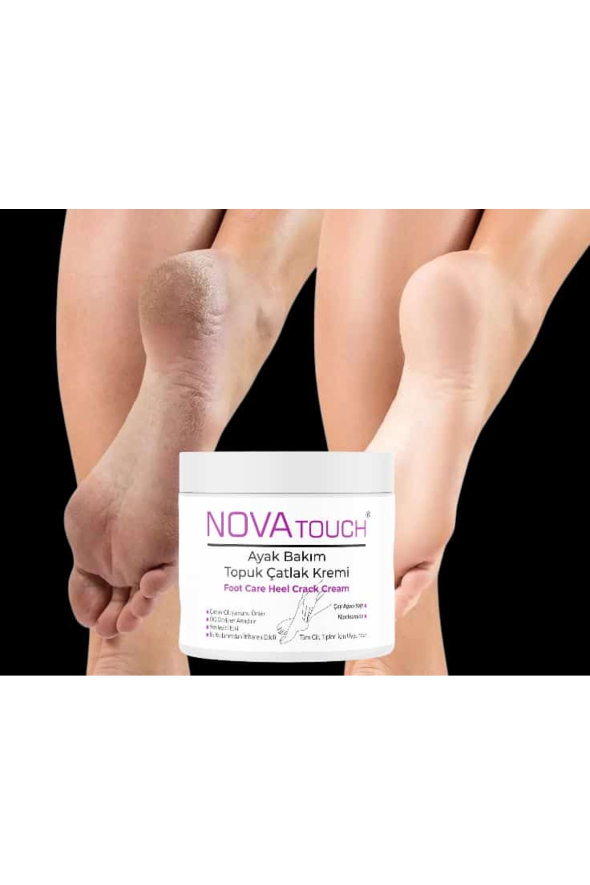 Doğal içeriği ile ayak ve topuk kremi Yumuşacık ve pürüzsüz ayaklara sahip olmanızı sağlar Çatlak topuklar için doğal içeriği ile ayak bakım ve onarıcı krem Çatlamış topukları hızla pürüzsüzleştirir ve onarır Sertleşmiş topukları yumuşatır Ölü deriden arındırır Koyulaşmış topukları beyazlatır Hayvanlar üzerinde test edilmez Tüm cilt tipleri için uygundur Her akşam yatmadan önce bölgeye masaj şeklinde uygulanabilir Gece boyunca bekletilebilir Bölgenin nem dengesine kavuşmasına yardımcı olur