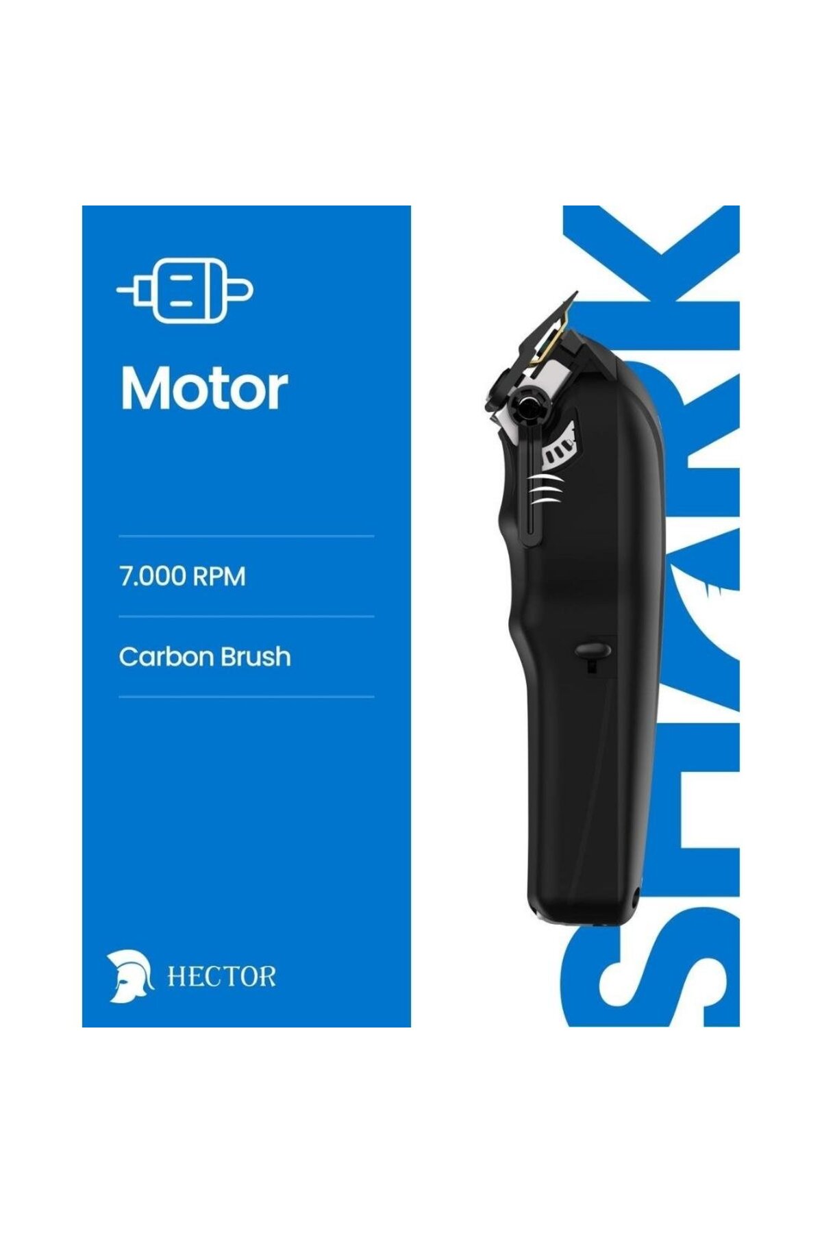HECTOR SHARK TIRAŞ MAKİNESİ 7000 DEVİR KARBON FIRÇA 3 SAATTE ŞARJ OLUR ŞARJ İLE 2 SAAT KULLANIM KUTU İÇERİĞİ TIRAŞ MAKİNESİ 6 ADET METAL TARAK 2 METRE UZUNLUĞUNDA ESNEK KABLO SERTİFİKALI ADAPTÖR TEMİZLİK FIRÇASI YAĞ